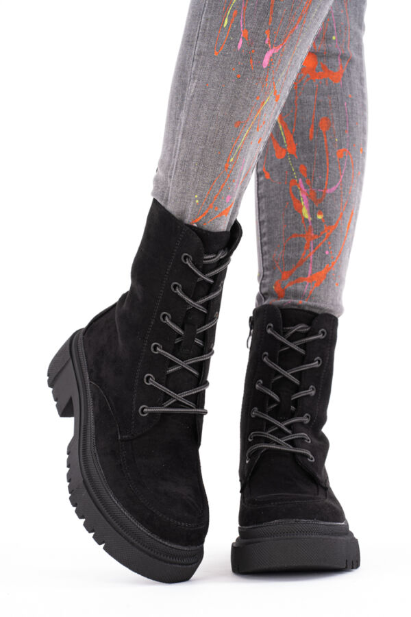 Czarne wysokie zamszowe modne botki damskie Matrix