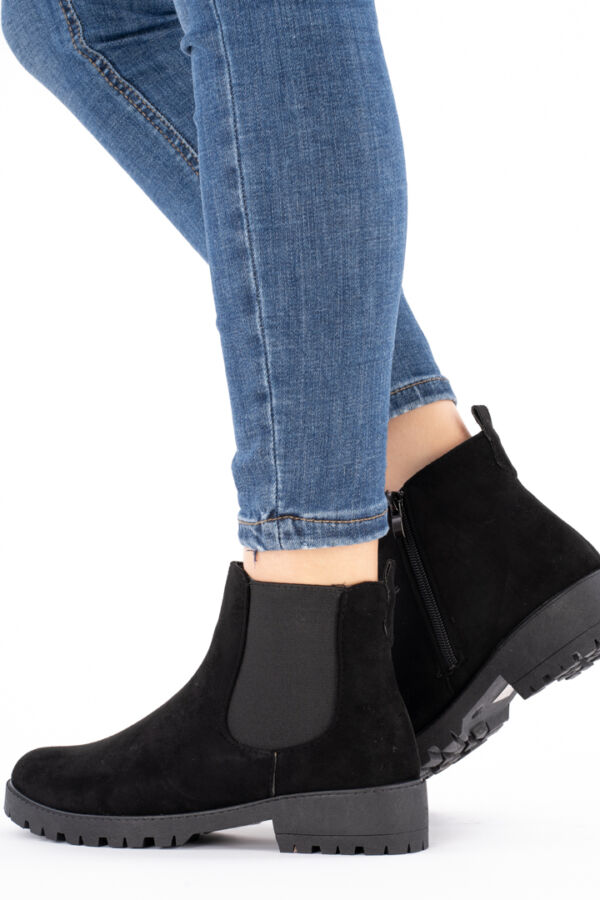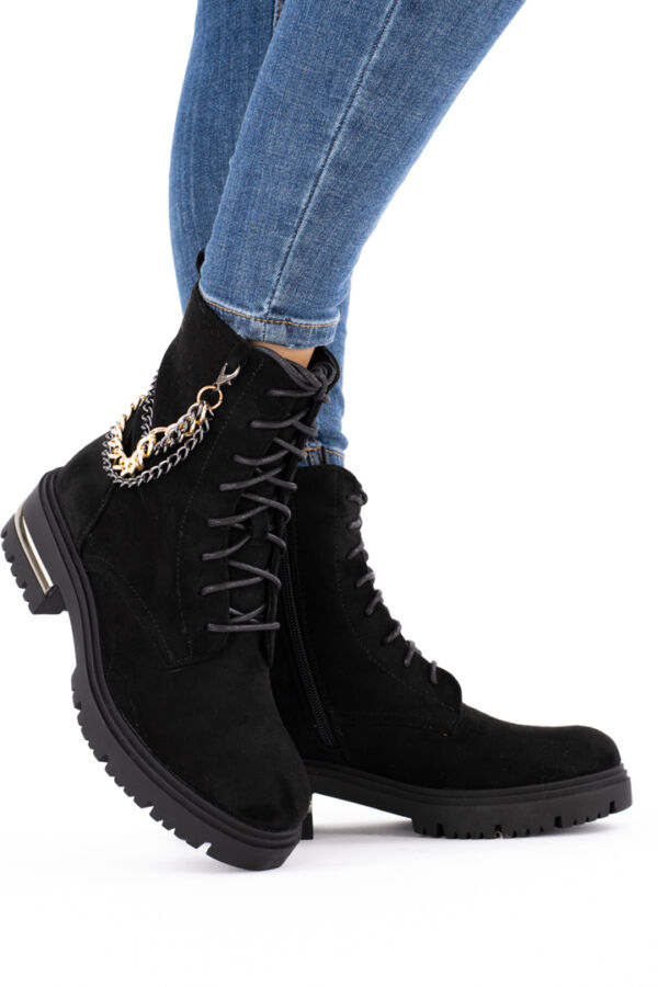 Czarne botki damskie zamszowe na płaskim spodzie z łańcuszkiem