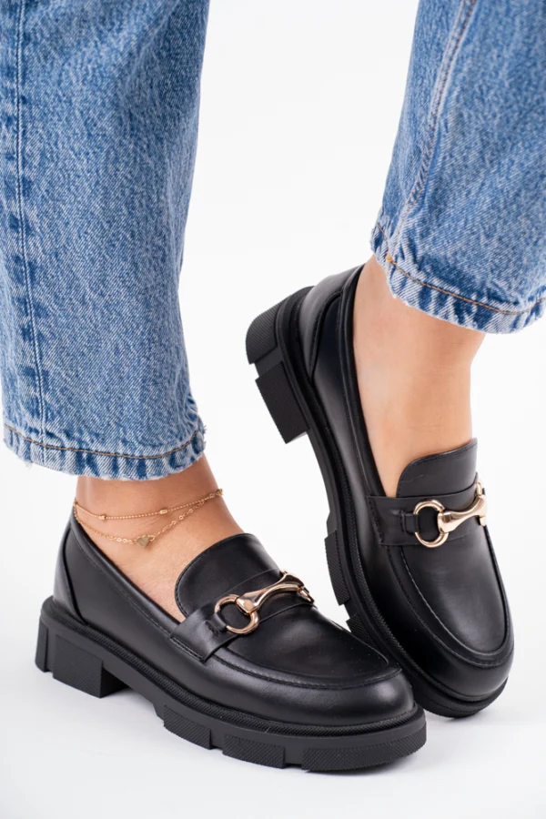 Czarne skórzane botki damskie na szerokim niskim obcasie