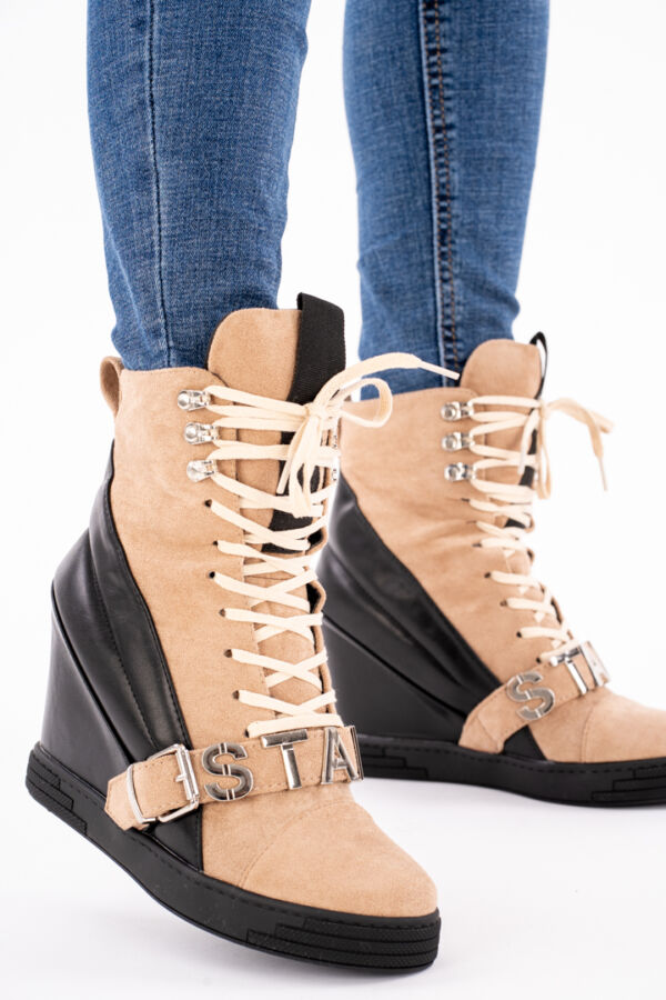 Sandały na koturnie wiązane na paski Damskie beżowe
